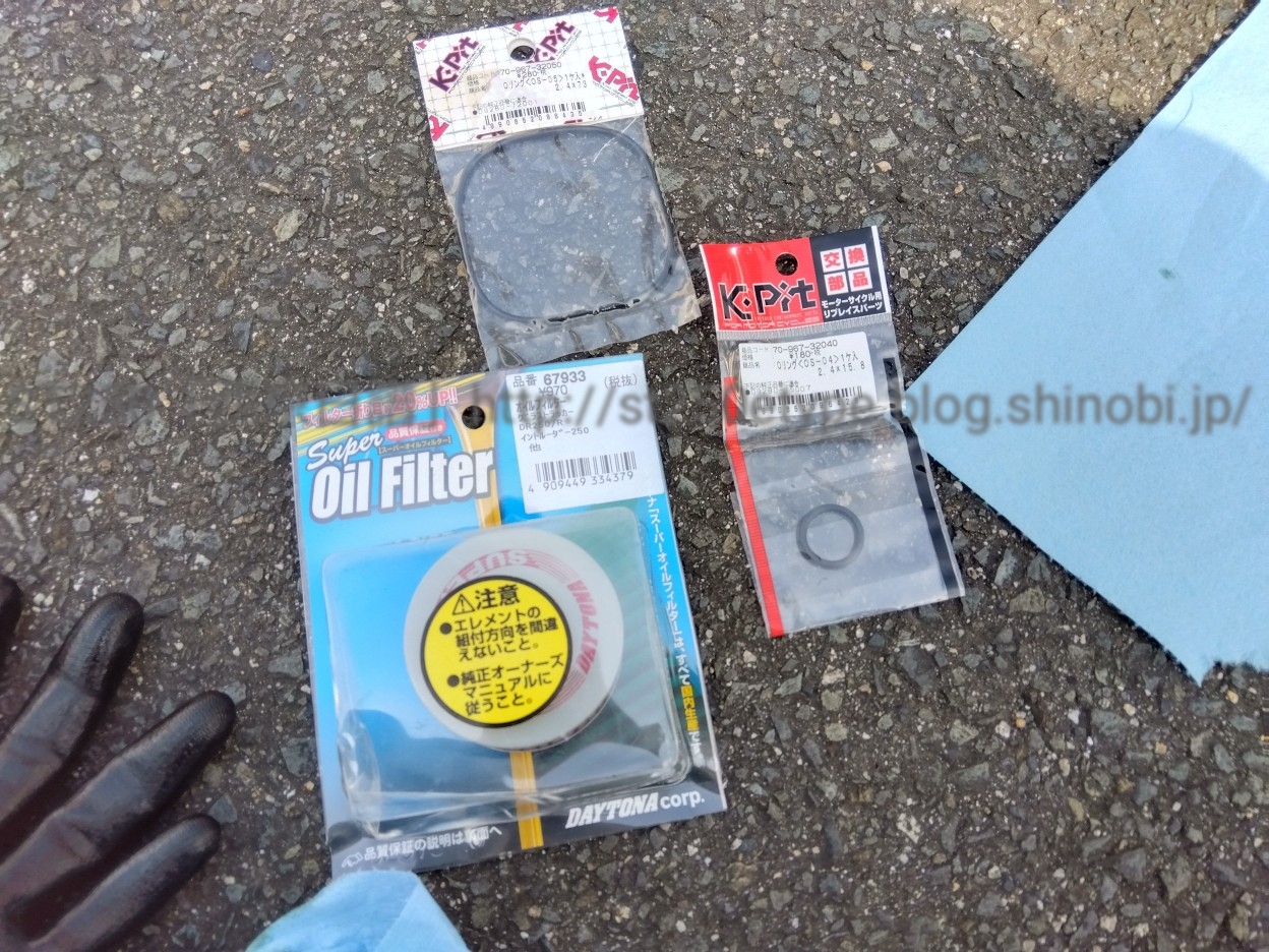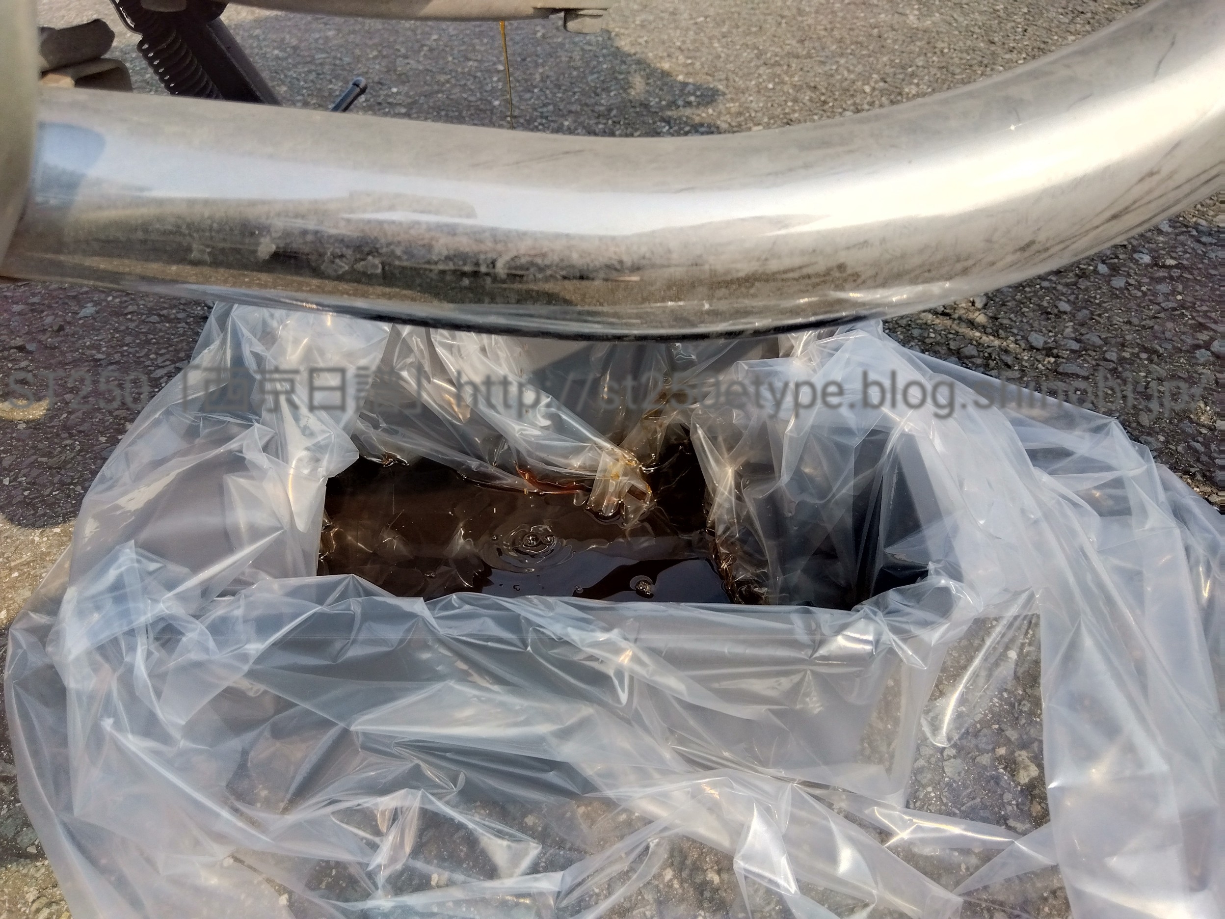 オイル&フィルター交換+EZバルブ(R4.6.18) 日記 2022年06月19日 0 今回はオイル、フィルター交換、併せてEZバルブの取付けの件です。・使用したオイルについて(過去記事)・EZバルブについて(過去記事)レッドバロンでのオイル交換から3,000km超走ったので、このタイミングでセルフで交換します。さらに今後のセルフ交換の面倒さのハードルを下げるため、EZバルブを装着します。この時期は暑いので、朝起きて早速作業に入る。軽く近所を走行して、エンジンを暖めドレンボルトを失くさないよう、あとオイルが熱いので手に掛からないよう、慎重に回して外す。▲確かにドレンボルトを慎重に回すのが面倒……(記事の作成中に気付いたことですが、ドレンボルトが廃油の袋の中に落ちたまま回収していない……) ▲廃油酷使しているのでもっと黒い廃油を期待していましたが、思ったよりまだ茶色でした。使用の状況:一般道を毎日40km、毎月800km超の走行 ▲オイルフィルターも交換 ▲取り外したフィルターレッドバロンで使用しているフィルターでしょうか。検索してもヒットなし。明細を見ると、このフィルター代は¥600になっています。フィルターカバーを開けると、写真のようにオイルが垂れてきますが、廃油のオイルパンを下に置いておけば問題ありません。まだ熱いので、注意しながら取り外します。 ▲使用するフィルター類フィルター:デイトナ スーパーオイルフィルター(品番 67933)グラストラッカー、DR250/R、イントルーダー250、他Oリング①:キタコ Oリング〈OS-04〉※純正品番(09280-15007)に適合Oリング②:キタコ Oリング〈OS-05〉※純正品番(09280-72001)に適合表示価格を合計すると¥1,500位になりますがネットショッピングなのでもっと安く買ったと思います。購入したのが4年前なので覚えていません(^^;) ▲取付けOリングは軽くエンジンオイルを塗って取り付けるようです。フィルター交換は、物さえあれば簡単ですね。(こんなに簡単なら前からやっておけばよかった。)▲EZバルブの取付けドレンボルトの代わりにEZバルブを取り付けます。手で締められるところまで回して、最後にモンキースパナで1/8回転させて終わりです。これも簡単です。▲使用したオイルナフコ ダッシュオイル 10W-40最後に使用するオイルを1500ml投入して、オイルフィラーキャップを着けて終了です。あとは廃油の処理は自治体の決めるところに拠りますが、可燃物になるところがほとんどの気がします。オイル缶は資源ではなく不燃物や金属類になるはず。持ち込み無料の回収業者で捨てている人がいますが、本来は間違いなのでは?この一連の作業でも簡単なんですが、EZバルブがあるとどれだけ手軽さを感じるようになるか、次回以降のオイル交換で確かめたいと思います。バイク(スズキ)ランキングへ