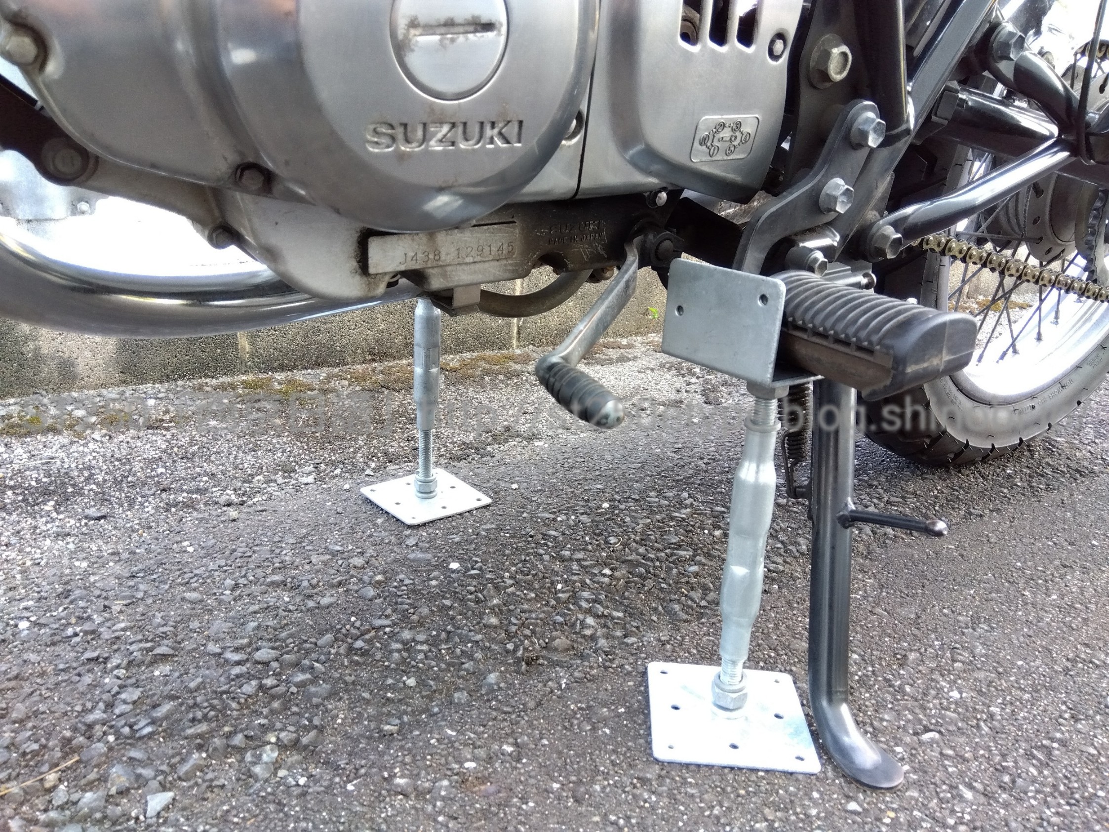 ジャッキアップとチェーンメンテ 日記 2022年09月11日 0 今回は久々にチェーンを調整した件です。 ▲ジャッキアップは鋼製束後輪を浮かせるため、相変わらず野蛮なジャッキアップ法をしています。こんなふざけた記事を公開していると、いつか誰かに叱られそうな気がしますが……(-_-;) 鋼製束を使うことの条件・硬い地面(コンクリート、アスファルト等)・地面が平坦(緩い坂、波打つようなコンクリでは駄目)・広い場所(倒して公共・他人の財産に傷をつけない)・自己責任以上が満たせない場合は使うことはできません。なんせ、横方向の力に非常に脆弱ですから。作業中もフラついて揺れて安定感はありません。 ▲フロントブレーキ固定ハンドルは左に切り、忘れずにブレーキ固定する。 ▲チェーンカバー類は先に外しておくリヤのアクスルシャフトやチェーンカバーなど、力を加えなければならない作業は、タイヤが地面に接地している状態で作業する。(やっぱりユラユラ揺れるから)さて、本題のチェーンです。 ▲アライメントツールチェーンの音がゴリゴリと鳴っていたため調整してみたけど、アライメントはそんなに狂いはなかった。チェーンのテンションが張りすぎていたようなので、少し緩めた。一番の原因は、スプロケットの変更をしてからも変わらず108コマのチェーンを使用していることかなと……少し詰めなければいけないようです(-_-;)現在使用している中華チェーンの交換の時に、キチッと合わせたいと思います。バイク(スズキ)ランキングへ
