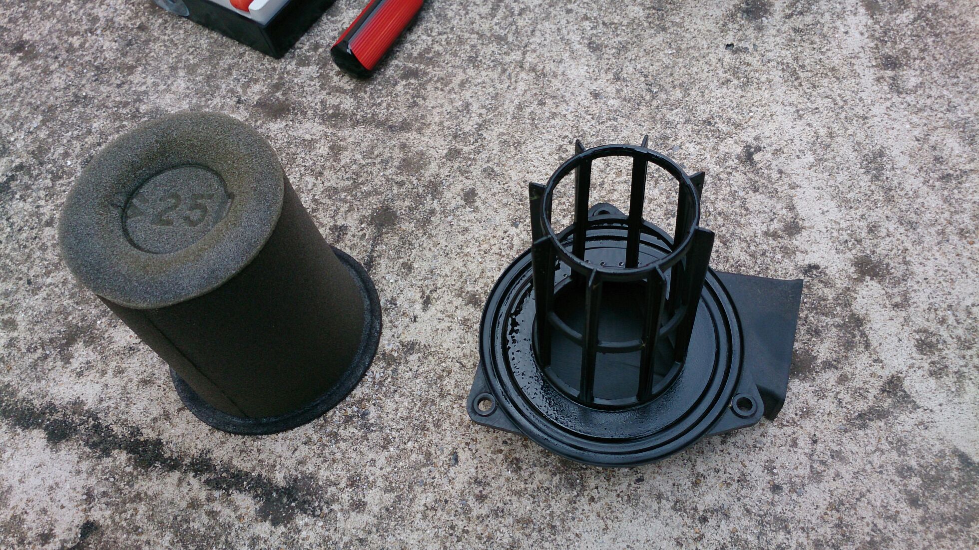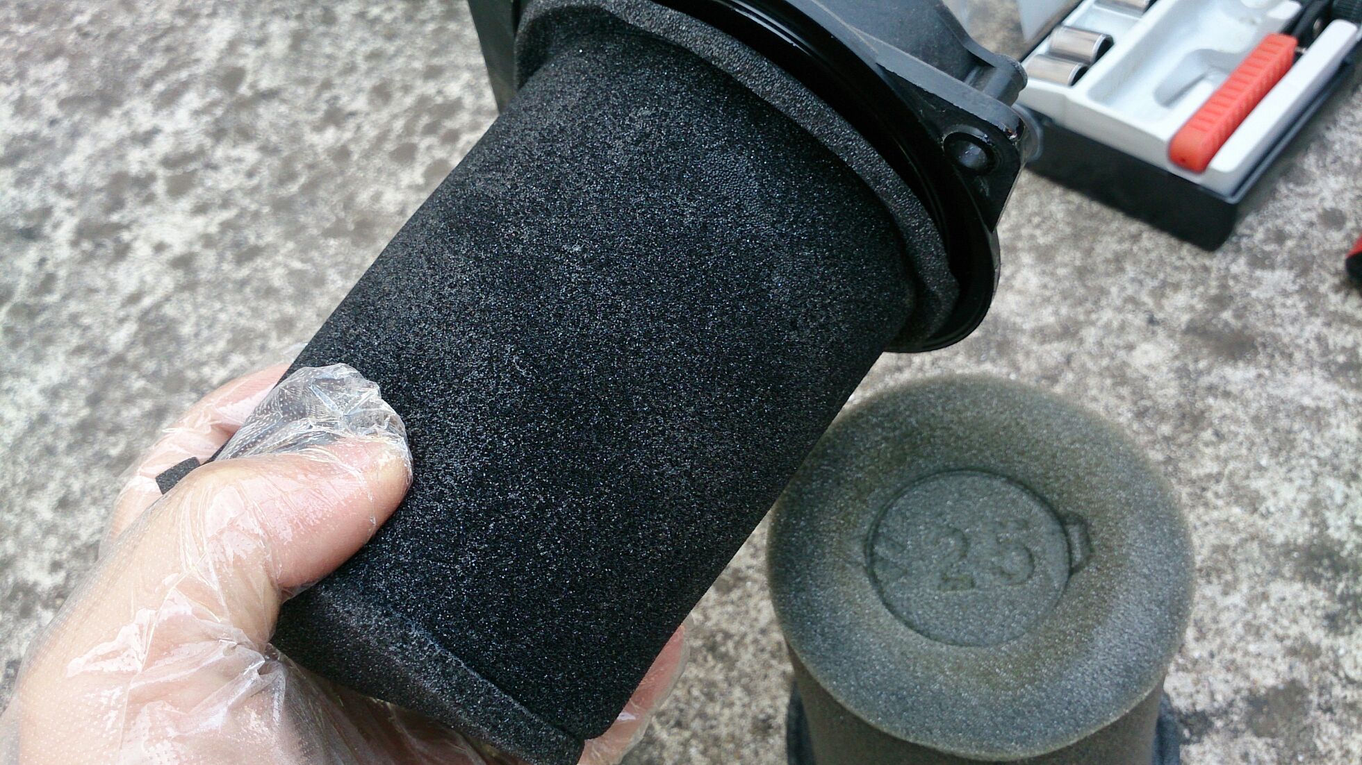 エアクリーナーメンテナンス 日記 2016年03月05日 0 今回はエアクリーナーの手入れです。通常は、3000kmに一回のペースで行うようです。3000kmならば私の場合はチェーンの手入れと同時に行うようになります。準備さえできていれば簡単な作業ですので問題は無いと思います。(R2.11.20追記 ※結局面倒なので3000kmごとのチェーン交換はやめました。安いチェーンなので使っては捨て、使っては捨てという形をとります。エアクリーナーについては気分次第となりました。)▲写真は純正品に付属する説明書(引用元不明)これによると、交換するものは「ポリウレタンホーム」です。そして浸透させる「オイル」が必要なことが分かります。オイルはスズキ純正のCCISか、SEA30相当とのこと。値段が安くて今後も使える方にしようと思います。一番近いホームセンターのナフコに行きました。CCISが600円しない価格で売られていましたが、同じく安い社外製の4ストオイルも置かれていましたので▲ヴァンダッシュ(東京) 4T4ストのエンジンオイルを購入。主な目的はウレタンホームに浸透させるためですが、洗い替えのチェーンを保管したり、STのエンジンオイルにも使えますので、2ストオイルのCCISは今回は却下です。▲ヴァンダッシュは600円弱で買えました。ついでに武蔵ホルトのサビチェンジャーも900円弱で購入です。 ▲左のサイドカバーを外す黒ではなく白(銀)のネジを外すと、ウレタンホームが取り出せます。▲純正のウレタンホーム▲黒:用意したウレタンホームこのウレタンホームはヤフオクで630円+メール便送料で入手しました(純正品は2000円ほど、NTB製でも1500円ほど)。ストア商品だったので安定的に入手はできると思いますが、作りはとても簡素です。タッパーに4ストオイルを注ぎ、ウレタンホームを浸して手でよく絞ります。使い捨てのポリ手袋は必須。(R2.11.20追記 ※他の方のブログで拝見しましたが、最近はスプレータイプのエアクリーナーオイルがあるようですね……その方が手も汚れないし簡単なのかな。今度やってみよう。)元に戻して終了外した純正品は、洗い替えのためにとっておきます。灯油洗浄になるのですが、方法はまだ考え中です。ビニル袋に灯油を入れて、中でもみ洗いをしようと考えています。そして乾燥させて保管……という流れでしょうか。(R2.11.20追記 ※灯油は何かと面倒なので、洗面台にて食器用洗剤でやってます。その方が簡単です。)バイクランキングへ PR
