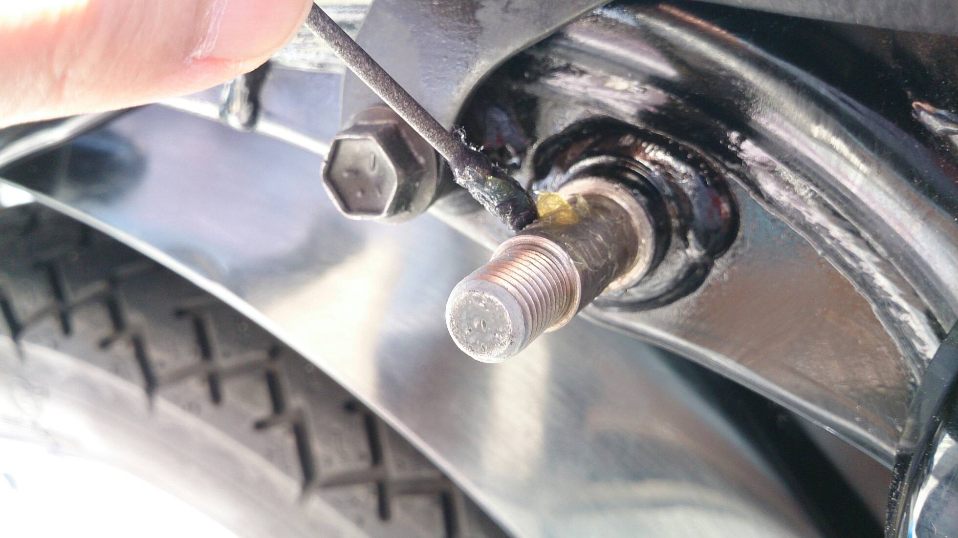 久々の整備 日記 2016年03月22日 1 今回は久々の整備です。半日かけてじっくりやってみました。初めてやってみたこともあったのですが、要領を覚えたので次回からはもう少し早く作業できると思います。整備に関してテーマは「費用は最小限に」です。まずは、ジャッキアップです。ただジャッキアップに関しては、コストパフォーマンスを追求すると危険度が上がります。▲まずはフロントブレーキを固定フェイスタオルで縛りました。▲「鋼製束(こうせいづか)」を立てます。鋼製束は近所のホームセンターにて360円で購入▲反対側反対側は右ステップの下にもう1つ鋼製束を立てます。念のためにマフラーに保護用のタオルをかけています。▲上げるスタンド側の鋼製束の高さを慎重に上げていきます。▲写真は上げすぎタイヤがわずかに浮けばよしよくあるジャッキアップ方法として、スタンドを利用して逆サイドだけを車載パンタジャッキで持ち上げる方法があります。はじめはそうやっていましたが、サイドスタンドへの過負荷が気になったのでやめました。ジャッキアップが完了したところで、リヤサスを外します▲取り外す片方ずつ外した方が、取り付けが楽です▲よく見ると内側に薄錆びいつもはシリコンスプレーで拭くだけですが、今回はピカールで錆びを落とします。▲手入れ後先日のスポーク磨きの要領でピカピカになりました。▲シリコンスプレーシリコンスプレーを全体に吹いて次の錆びや汚れを予防する。安いときは150円くらいで手に入ります。取り付けの準備に入ります。▲グリスを使うこれを塗るのはサスの取り付け部です。▲取り付け部金属面の磨耗を防いで、さらにボルトなどに塗ってカジリつきを予防します。▲綿棒などで取り付けましたら、片側は完了です。これをもう一度繰り返してサスはお仕舞いです。まだ続きます。次はチェーンの清掃です。今まで市販のチェーンルブを使っていたんですが、粘度が高いのと砂利を拾うためエンジンオイルに変更します。▲クリップジョイント100均のエンドカッターでチェーンクリップを外します。チェーンは先日交換したKMCの520Hです。▲外すノンシールチェーンですので抵抗がありません。自重でスルスルと落ちてきます。洗浄した後で、格安エンジンオイルに浸して宙吊りにします。2メートルほどあれば宙吊りにでき、油分は下に流れ落ちていきます。余分なものは写真のようにウエスで拭き取ります。(R2.11.20追記 ※この方法はとても面倒なので今はやっていません。)まだまだ続きます。宙吊りの間にシートを外すことにしました。▲3年分の埃です水拭きします。▲よく見ると、所々に赤錆び▲サビチェンジャーを使う赤錆を良性の黒錆に変化させるものですね。錆はフレームの溶接部の各所に点在してましたので、片っ端から塗り潰します。シートも全体的にシリコンスプレーを使い、表面の艶だしと裏のホチキス針の防錆処置をしました。干していたチェーンを取り付けます。▲S字フックを使ってみたが、あまり意味はありません。▲Made in JAPANST250は国産のバイクです。(R2.11.20追記※最近『MADE IN PRC』というのを見かけます。ご存じですか?正体はただの中国製です。確かな理由は知りませんが『MADE IN CHINA』の印象が悪いためPeoples Republic of CHINAの略である「PRC」と表記して誤魔化しているようです。最近はブレーキパッドの箱の裏に書かれているのを見たことがあります。ま、余談ですが。)今回の整備の内容は以上となります。走行距離が一万キロを越えたのでリフレッシュという感覚ですっきりしました。次はアーシング(正式名称は知らない)をしたいです。それからウインカーのレンズをクリアにしようか迷っています。バイク(スズキ)ランキングへ