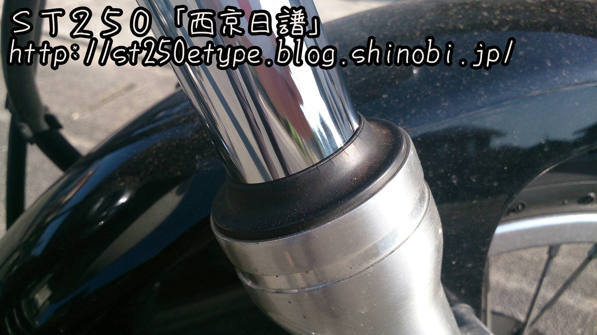 フォークシールの劣化 日記 2016年06月02日 0 一週間ごとのチェーン給油を行いました。センタースタンドはありませんが、全然問題はありません。少しずつ後ろに下げていくだけです。センタースタンドがあれば、それは簡単ですが。このKMCのチェーンはクリップジョイントなので、クリップが目印になって分かりやすいですいつも通り、チェーンに給油して何気なくサスペンションを見ると。お分かりでしょうか?前日に未舗装路を走ったため、沈み込んだ量(汚れの所まで)が見えます「底突き」はしていません。底突きを防ぐには、地面の凹凸部分でわずかに腰を浮かせます。膝で柔らかくステップに立ち、ハンドルも柔らかく握る。こちらはリヤサスです。普段はシリコンスプレーで拭き掃除。さて、フロントフォークをよく見ると……フォークシールに「ヒビ」がたくさん入ってます中古(走行3000km)で購入して3年ほど経過、劣化ですね。しかし、フォークシールの交換はDIYでは難しそう……走行距離が1万kmになったので、フォークオイルの交換をしないといけないと考えていた頃ですなんとか自力でできる方向性を追求したいところですが。バイク(スズキ)ランキングへ