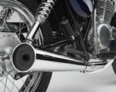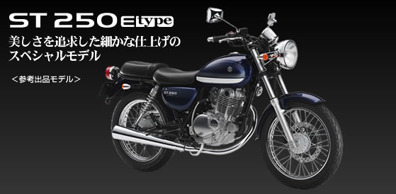 グラデーションの美しいタンク、マフラーやメーターカバーのメッキ加工など、随所に細やかな仕上げを施した特別仕様車「Etype」。キックペダルも特別装備しており、独特のスタイリングと始動時のフィーリングを楽しむことがでます。モーターサイクルの美しさを追求したその高い質感は、ライダーとして走る楽しみと同時に、オーナーとして所有するよろこびも与えてくれる一台です。