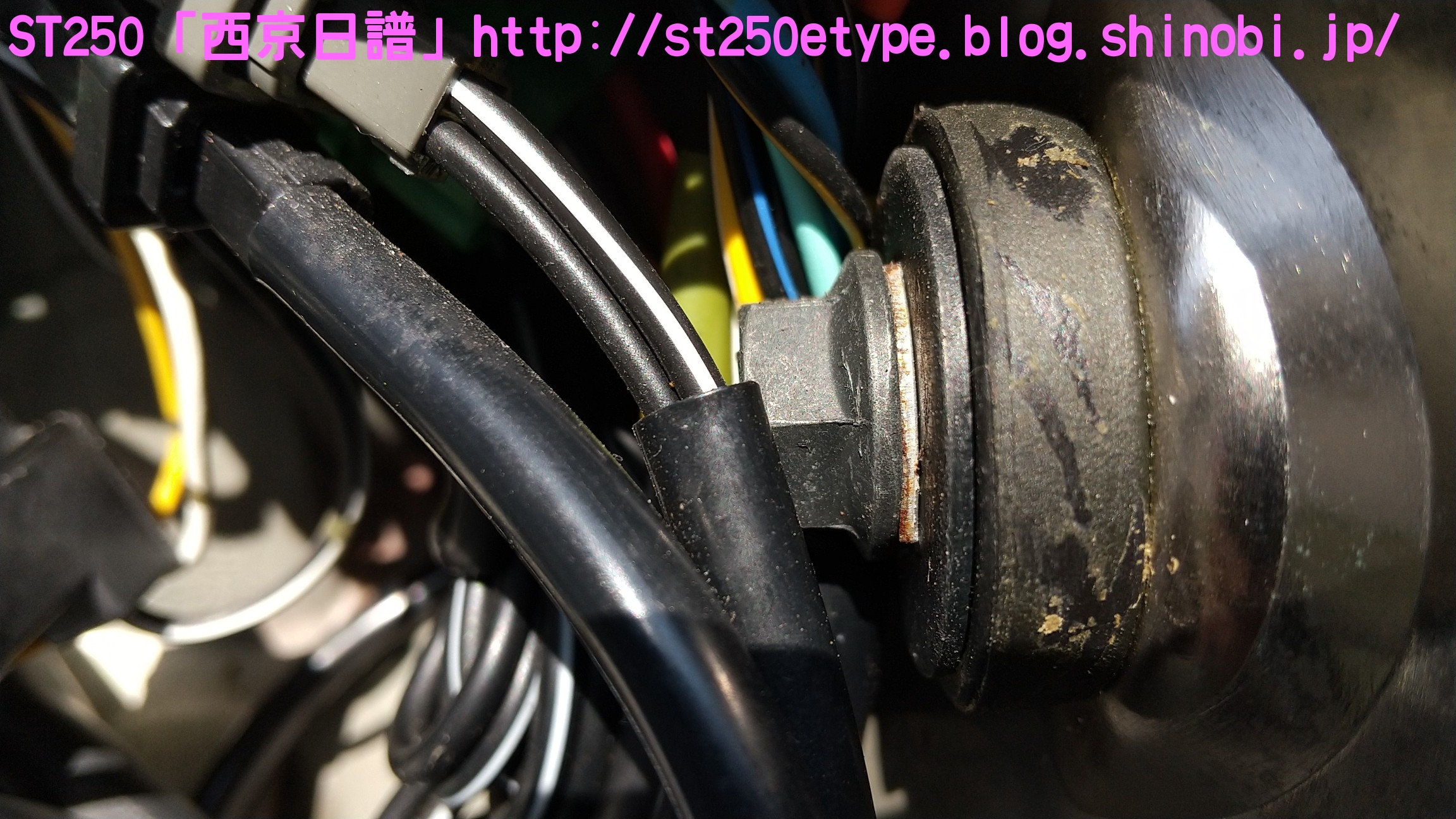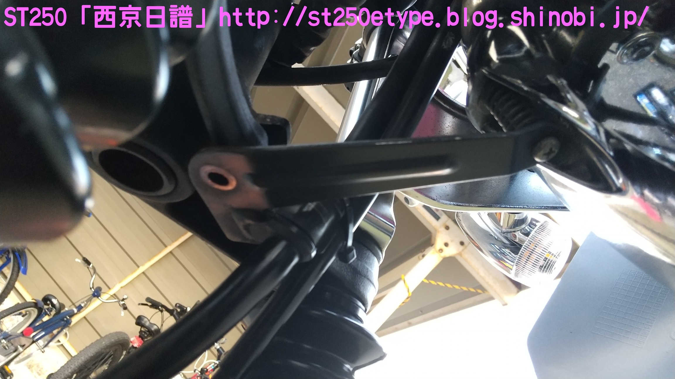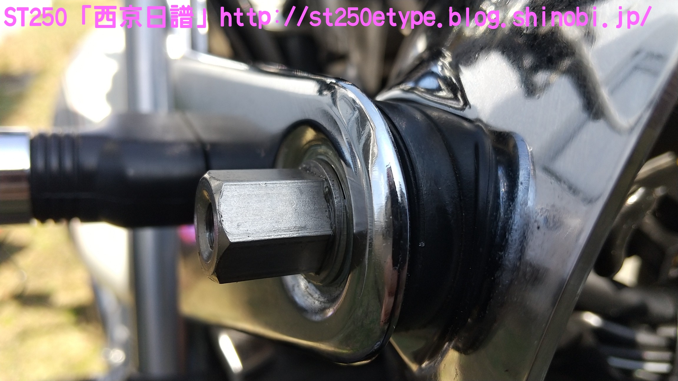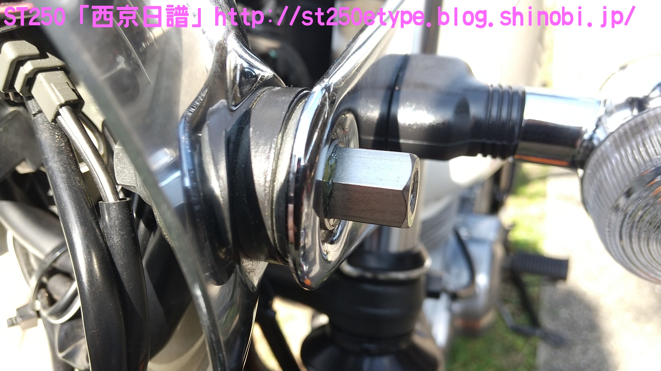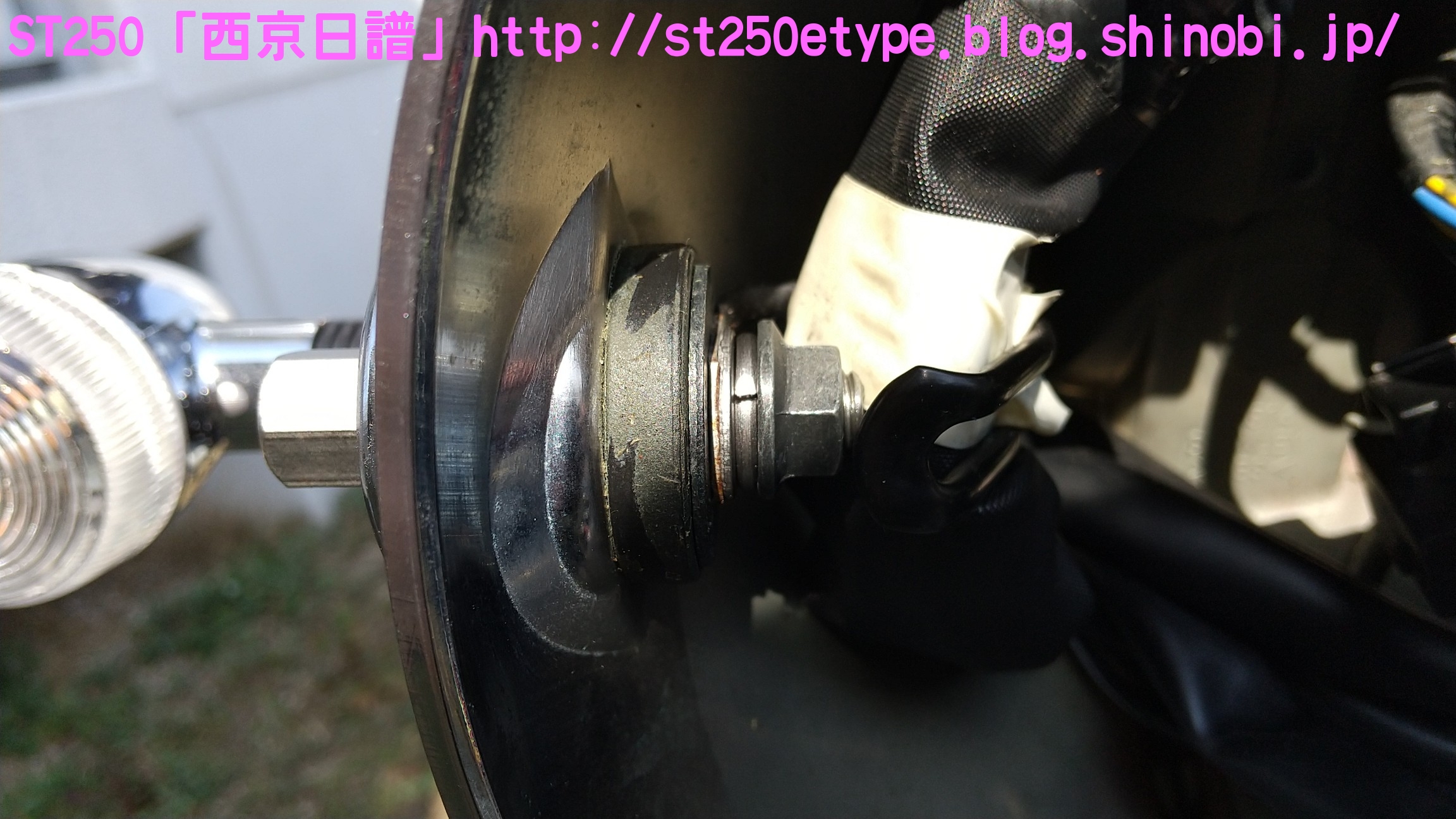 フォークブーツ&タンデムグリップ装着 日記 2020年12月30日 0 タイトルのとおり、フォークブーツとタンデムグリップを装着しました。ですが、本来の目的はフロントフォークのオーバーホールとステムベアリングの交換です。もう何年も前から、というか納車して1年後辺りからフロントフォークからオイル漏れの症状がありました。よく見るとフォークシールにヒビがあり、そこから漏れているようでした。当時はローンの返済で、修理なんかに費用を充てられませんでした。DIYも考えましたが、追加購入しなければならない工具なんかもあり断念。騙しだまし乗り続け、はや7年……さすがにフロントフォークも限界かと。ローンもだいぶ前に完済したし、いつものレッドバロンで見積りを依頼。フロントフォークのオーバーホール……だけでなくステムベアリングの交換も追加され、部品代&工賃込みで総額3万ちょい。ちなみにフォークは再利用します。時間と労力を考えると対価としては妥当……?しぶしぶ了解し、帰ろうとした時にふと思いつきました。ついでにフォークブーツもお願いしよう。確認すると、フォークを分解するのでフォークブーツに関しては技術量が掛からないので、部品代だけで良いとのこと。フォークブーツはキジマの汎用品で適合するものを取り寄せるとのことで、代金は3千円。↑装着されました。下部に太めの結束バンドが目立ちますが、納得の仕上がりです。渋く良くなりました。見た目のクラシックさが増し、レトロ感が上がりました。見た目だけでなく、フォークシールが完全にカバーされるので紫外線による劣化防止になると思います。フォークブーツの耐久性はどれくらいか、様子見です。ステムベアリングは、正直変える必要があるのか……?と思っていましたが、とても効果がありました。ハンドルが軽くなり、運転しやすくなりました。↑DIYで取り付けました。次はハリケーン製のタンデムグリップを取り付けました。部品の購入価格は9千円くらいでした。見た目がSR風で、納得の仕上がりです。ちなみに、取り付けには少々苦労しました。アーレンキーだけでは後方のネジが回らず、コンビネーションレンチを組み合わせ、何とか回しました。バイク(スズキ)ランキングへ