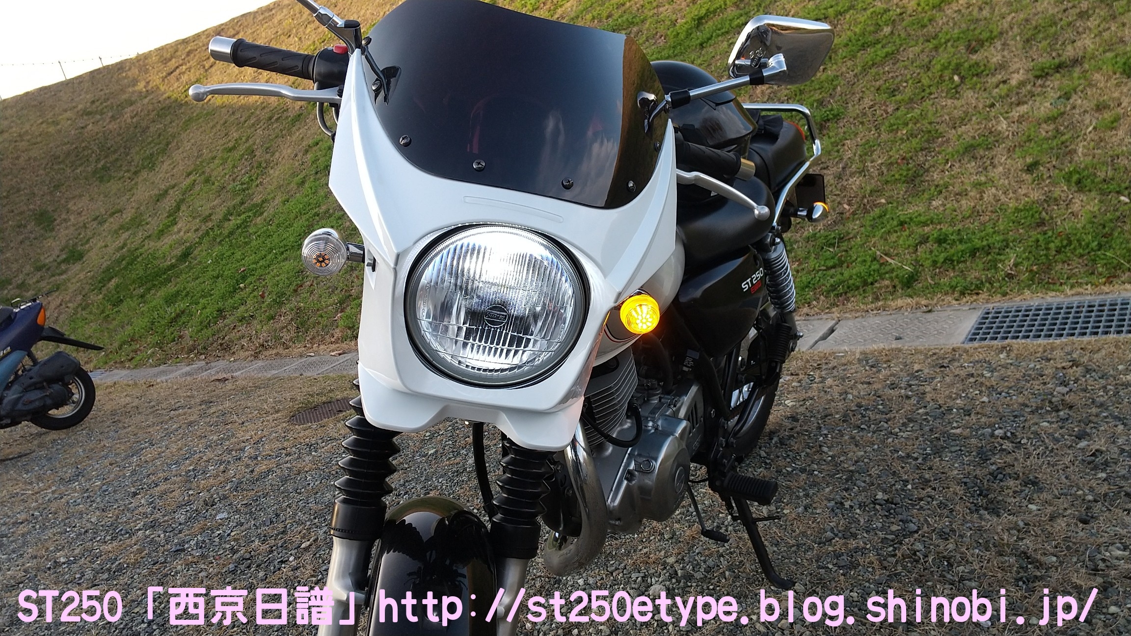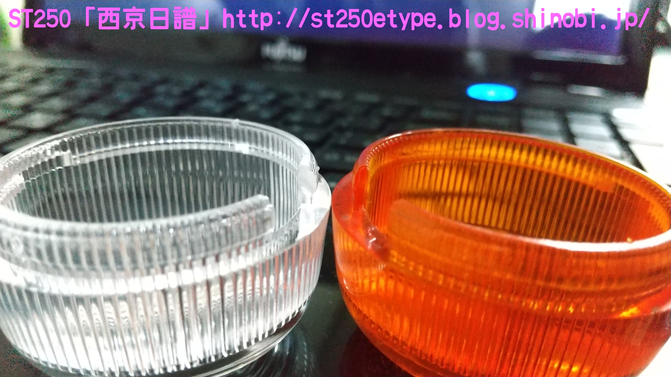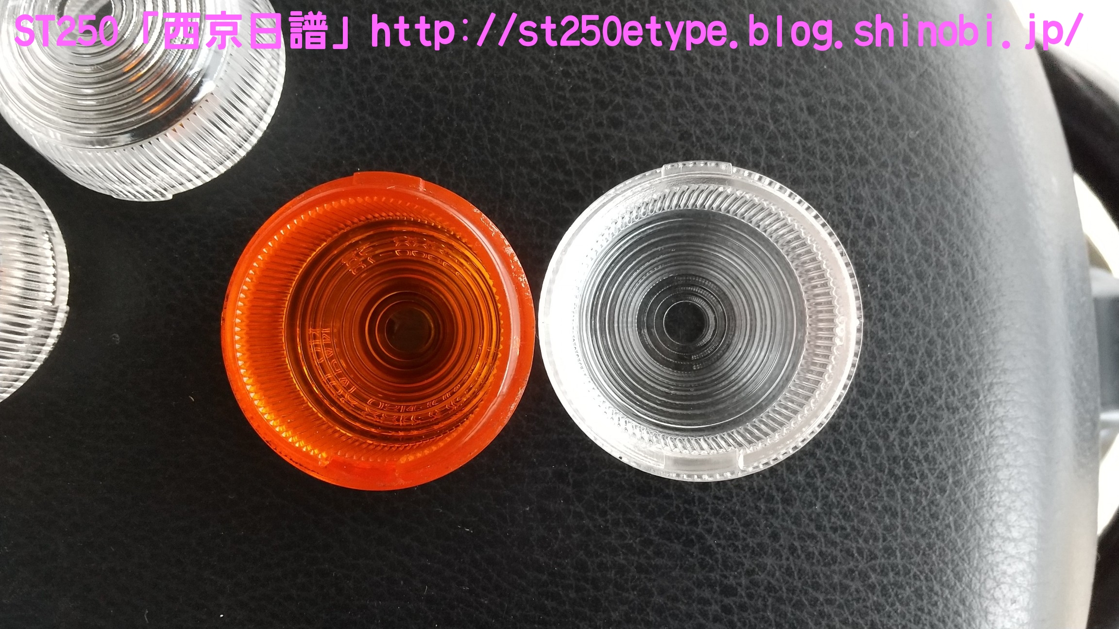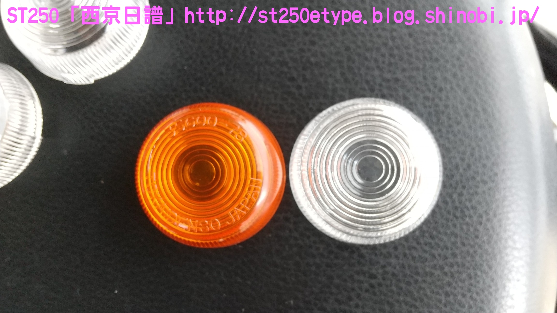 クリアウインカー導入 日記 2021年02月20日 0 これまで、通常のオレンジのウインカーレンズに白色LEDを組み合わせて使用していました。夜間は問題ないのですが、昼間はどうも視認しづらいと感じていました。太陽光の下では点滅してるのかどうかが分かりにくく、安全面に疑問を抱いていました。さらに、最近の車のウインカーは目につく限りではクリアが一般的でオレンジのウインカーなどは一昔前のもののようです。今日のスマホのニュースで流れていた、ホンダのニューマシンである「GB350」。ネオレトロというジャンルですがやはりウインカーレンズはクリア。安全面、見た目……どういう理由なのかは分かりませんが、これから販売される車両にはクリアが採用されていくものと思われます。ということで、安全性の獲得と時代の流れに合わせるためクリアレンズの購入です。ネットショッピングで2個/1,100円と送料で計2,800円ほどと少し高め。↑宮崎県からの発送。メイドイン台湾の表記。ちなみに、MADE IN PRCは中華人民共和国(Peaples Republic of China)です。ブレーキパッドなど重要部品で見かけます。理由は分かりますよね?China表記では印象が悪いからです。私は敢えて避けるようにしています。台湾製は、国力や国情的に信頼しています(日本精神という考え方がある国ですから)。※あくまで印象です。純正との比較(表)クリアの方にはメーカーの文字がありません。純正との比較(裏)ほぼ分かりませんが、凸部分がクリアの方がわずかに大きい。既に購入者レビューで確認済みでしたが、やはりウインカーケースに嵌め込む凸部分がクリアの方が若干大きいため、そのままではキツすぎました。純正は手で着け外しできますが、クリアはキツすぎてマイナスドライバーがないと外すことができません。それはそれでイタズラ防止にはいいんですが、レビューによるとウインカーケースが過負荷によりヒビ割れを起こすようです。 ウインカーケースの交換となると面倒なので、クリアの凸部分をヤスリで削りました。純正と見比べながら削ります。結局、慎重になり過ぎて思ったより削れませんでした。ヒビ割れの恐れはたぶんなくなり、ポン着けよりマシという程度ですが、装着感が固いので外しはマイナスドライバーが必要です。小さめのマイナスを地面側にある隙間から差し込んでテコの原理で外します。特に傷もつかないので大丈夫でした。では装着後です。↑比較用(純正)オレンジ感がなくなり、端正になった気がします。球にはアンバー色のLEDを使用。規格は平行ピン180度です。元々着いているのを見れば分かりますね。↑こちらも宮崎県からの発送でした。2個/1,200円と送料で2,600円ほど。商品説明では「爆光」タイプではなく「高発光」タイプとのことでしたが、これでも眩しいくらいよく光ります。最近は種類が多いのであまり長いものだとレンズに干渉するので注意が必要です。期待していた安全面での視認性アップと、ドレスアップ効果が一気に獲得できた気分となりました。追記です。後日、ウインカーが点滅しているところを写真を撮りました。なかなか良く光っていて視認性良好です。バイク(スズキ)ランキングへ