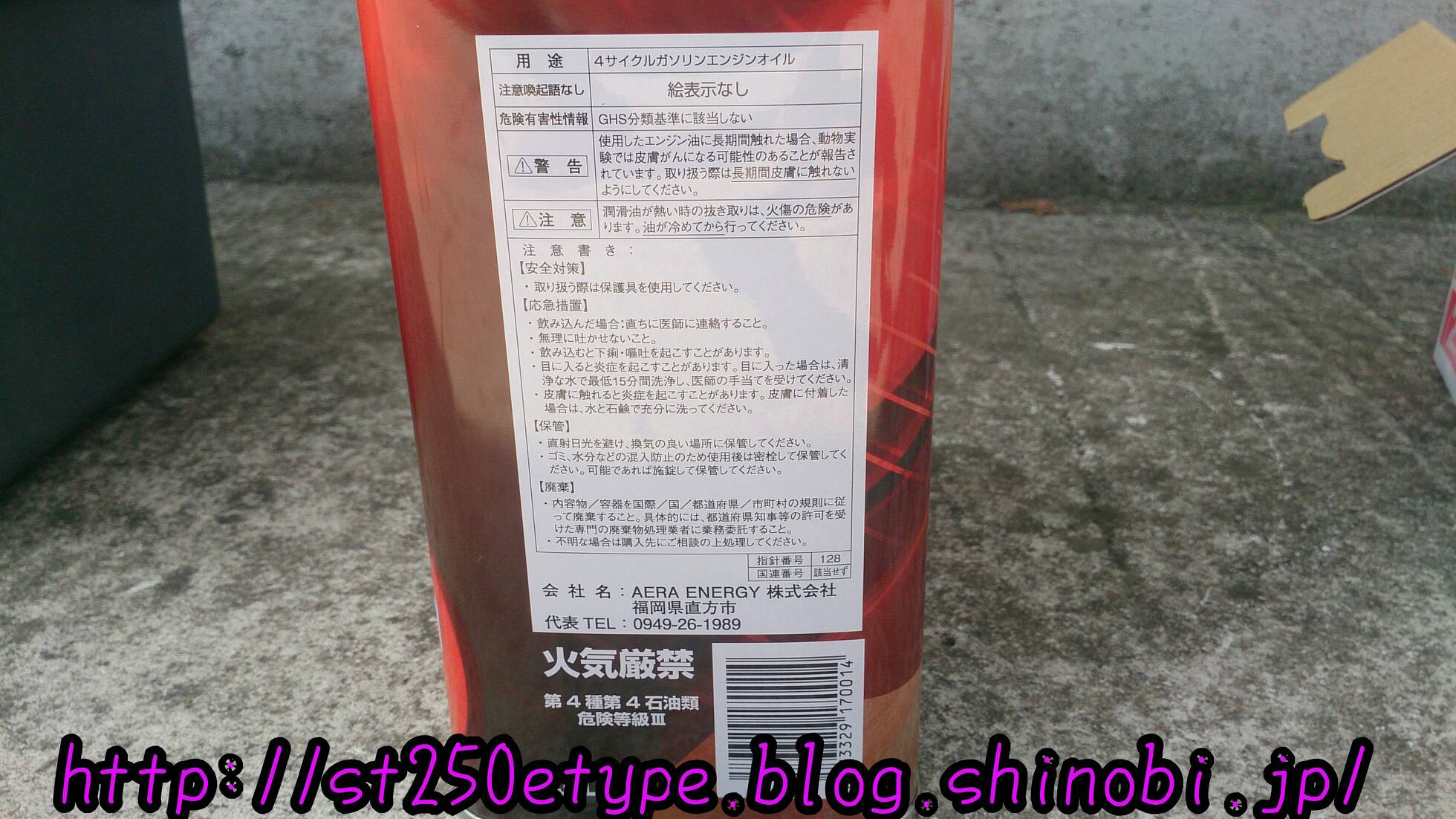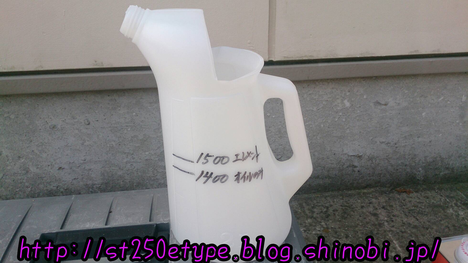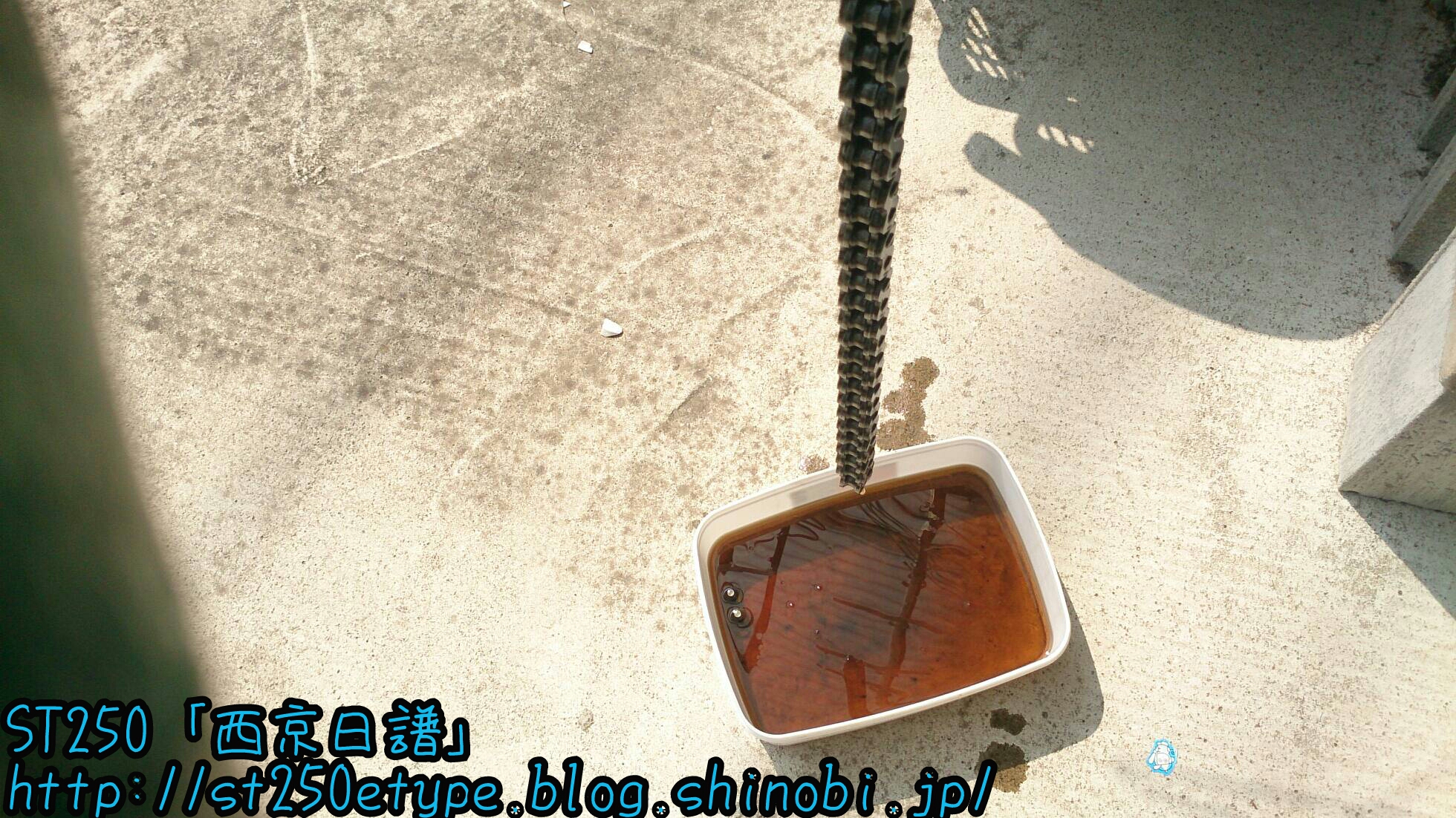 オイル交換(29.8.20) 日記 2017年08月20日 0 本日は初のオイル交換をしました。「初」というのは、今まではオイルリザーブ会員でもありレッドバロン山口さんにて作業してもらっていました。しかしお店に行くには一時間かかり、わずかな工賃を払い、また一時間かけて帰途につく……この一連の動作に不満がありました。時間節約、費用削減、自分で作業を行います。【準備物】・エンジンオイル・17㎜スパナ、レンチ・オイルジョッキ・廃油処理パックホームセンターですぐに揃います。※本来ならドレンボルトとガスケットを交換しなければなりません。【必要なら】・革手袋・ビニル手袋DASH エンジンオイル 10W-40 3L缶で税込1590円ほどでした。1Lあたり530円ですから、コスパはいい方。しかし、ホームセンターのPB(プライベートブランド)らしいですが素性はよく分かりません。詳細な記載が無い。しかしながら粘度:10W-40JASO規格:MA(滑りに抵抗がある)規格は探していたものです。ジョッキには目盛りを書きました・オイル交換時:1400ml・オイルフィルター交換時:1500mlこのオイル量はレッドバロンでの数字です。※他サイトを見ると違う数字が出てきます。確認窓で「F」と「L」の中間にオイル量を確認できます。また、今回の様に3L缶を使えばだいたい2回分なので丁度いいです。 このコンビネーション一本で作業を開始します。エンジンを掛けて暖機します。エンジンが熱くなったら、フィラーキャップを外します。この時キャップそのものも熱くなっているため注意します。ドレンボルトを外してオイルを抜きます。スタンドとは反対側へ傾けて、可能な限り古いオイルを抜きます。廃油パックは2L用で価格は212円ほどでした。結局金かかるな。ドレンボルトは再利用しました。※本来なら純正であればボルトとガスケットともに新品に交換。併せて、今回はドレンボルト(17㎜)の付近にある、同じく17㎜のボルトも外してみました。↑こういう物が出てきますこれはニュートラルギア関係の部品らしく、間違えて組み込むとギアが入りにくくなったりするそう。以前から気になっていたので、確認のため今回は敢えて外し、自分で責任を持って組み込みました。あとは、ドレンボルトをしっかり締めて、ジョッキオイルのためオイルを1400㎜入れて、終了。オイルフィルターは交換しませんでした。バイク(スズキ)ランキングへ