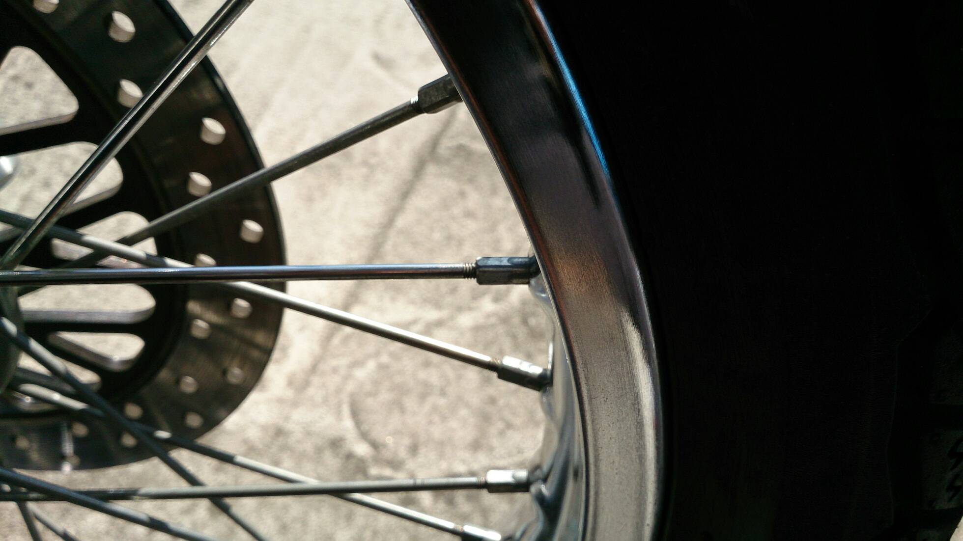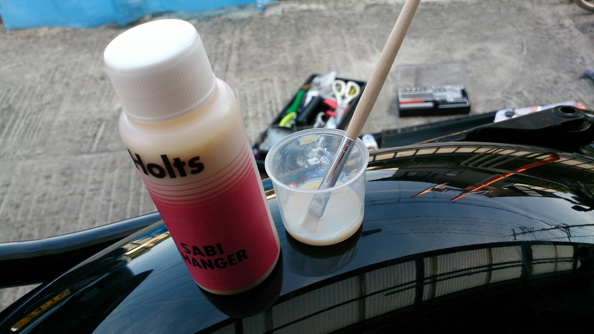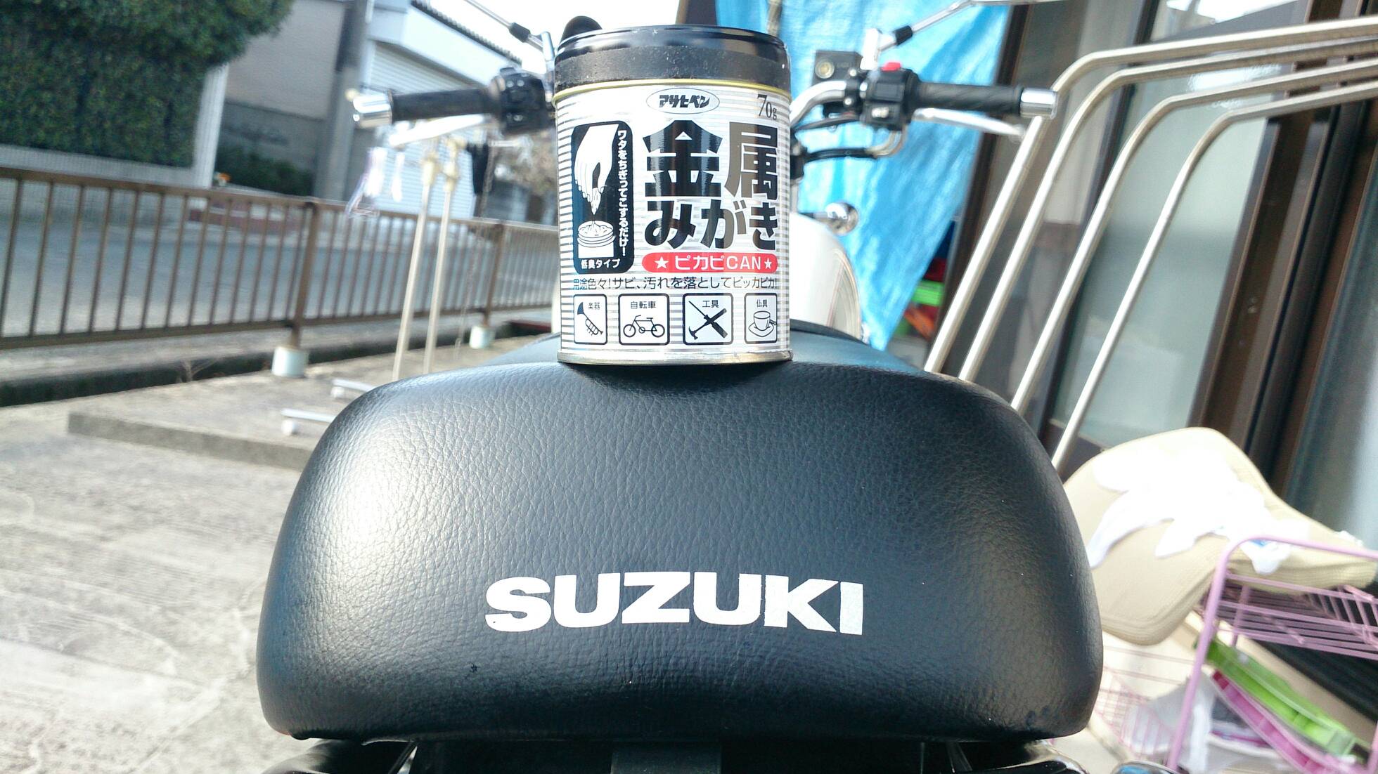初のスポークの磨き 日記 2016年03月22日 0 今日は単なるSTのメンテです。少しばかり「磨き」を入れました。まず、買ってからずっと使っていなかったアサヒペンの「ピカピ缶」を使ってプラメッキ部分を磨いてみました。(R2.11.20追記※メッキ部に関しては、メーカーは知りませんが最近発売された『メッキング』という商品で磨くべきだと思います。高額で5000円くらいしますが、研磨剤が入っていないので素材に優しいはずです。再メッキ効果もあるらしい。余裕があったら買ってみよう。ちなみに、同社製のサビ取りキングは買いました。こちらは2000円程度で優しい価格で、エキパイのサビ取りに活躍しています。)▲ピカピCAN缶の中の綿を必要な分だけ千切って使います。綿に灯油や研磨剤が含まれていて匂いが着きますので、手袋をした方がいいでしょう。くるくると小さな円を描くように磨いてきます。▲使用後この「綿」でちまちまと磨くのでは研磨力としては弱く、ウエス+ピカールの組み合わせの方が効率的かも知れません。しっかり磨いたのですが、ご覧の通り小さなつぶつぶが残りました(´-ω-`)(R2.11.20追記※やはりピカールなど研磨剤入りのもので磨くのは辞めましょう。メッキによくないと思う。)↑液体ピカール今度はピカールを使ってスポークを磨いていきます。購入後3年経過したスポークは艶も光も完全に失っていました。初の試みなので要領が分かりませんが、とりあえずやってみます。何度か試して、ピカールをウエスに染み込ませ(写真のように)スポークに巻きつけて磨くのが最も高効率でした。分かりにくいですが、磨いたスポークは他と比べて青白く光るようになります(’-’*)しかし、それでも時間がかかってしまい、10本だけやったら疲れたので切り上げ。1日では時間も足りないし指の力も持続しないので、コツコツとやっていかなくてはならないです。後でネットで調べて分かったのですが、今回のスポークの磨き方はなかなか正解だったようです。しかし、ウエスではなく麻紐などもっと細いもので行うのがメジャーなようです……。もう少し100均のマイクロ繊維で頑張ってみるつもりです。バイク(スズキ)ランキングへ
