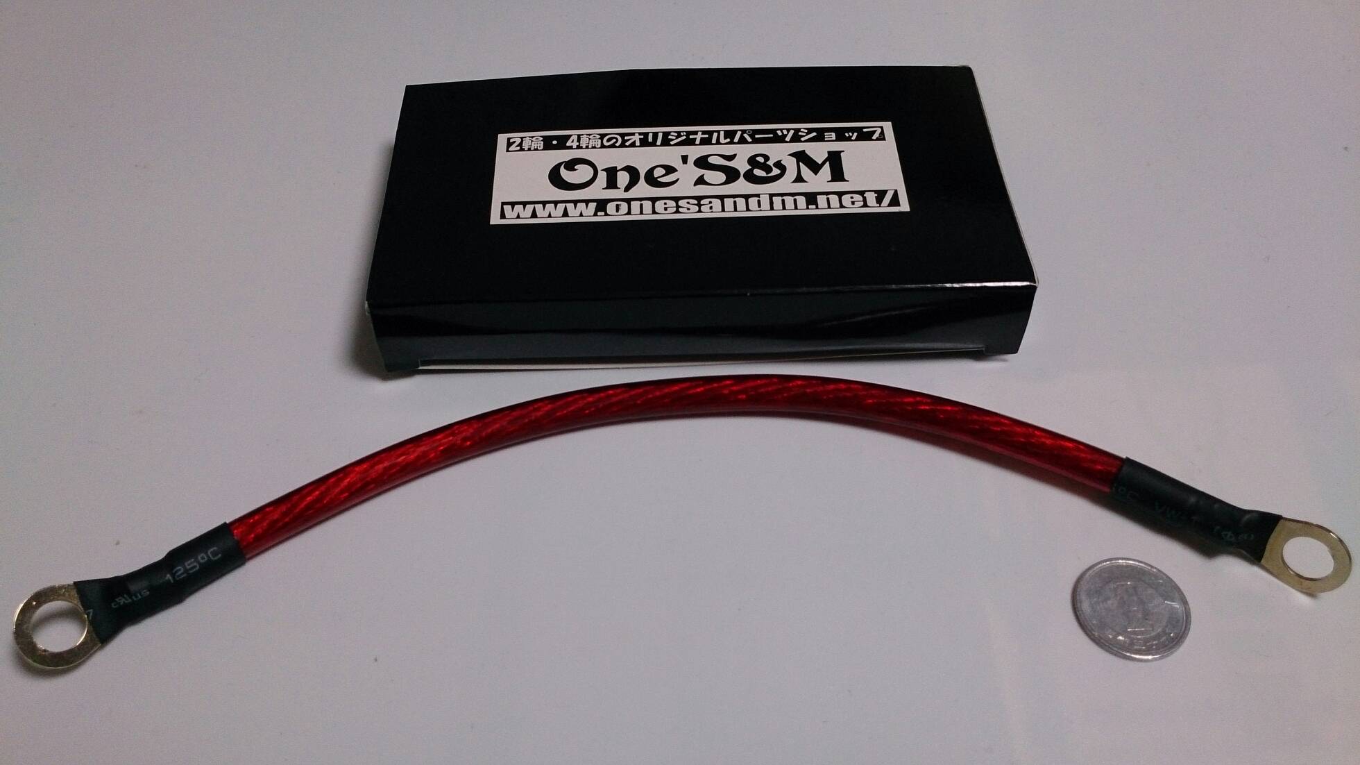 アーシングケーブル購入 日記 2016年03月26日 0 今回はアーシング用のケーブルを購入した件です。▲20センチ(1円玉は比較)情報によると、自分で作れば数十円で用意できるとのことですが、どこで買えばいいのかの知識もありません。そのためいつものヤフオクで出来合いのものを買いました。▲端子部のアップ収縮チューブ?で処理されています。【製品仕様】8ゲージカラー:クリアレッド最大定格電流:73A直流抵抗:2.0mΩ/m多重ツイスト構造外径:7.4mm端子には伝導率を高めるために金メッキ採用↑一応記載しましたが、良く分かりません。金メッキだと伝導率がいいんでしょう。価格は、150円/10センチです。今回のアーシング施工方法として必要なのは20センチという情報なので、これにメール便の送料を加えて460円でした。【アーシングの主な効果】※引用です。全域にわたるトルクアップスロットルレスポンスアップ燃焼効率が向上し低燃費を実現中・低速域のトルクの向上ヘッドライト照度の向上等特に旧車には効果が覿面バイク(スズキ)ランキングへ