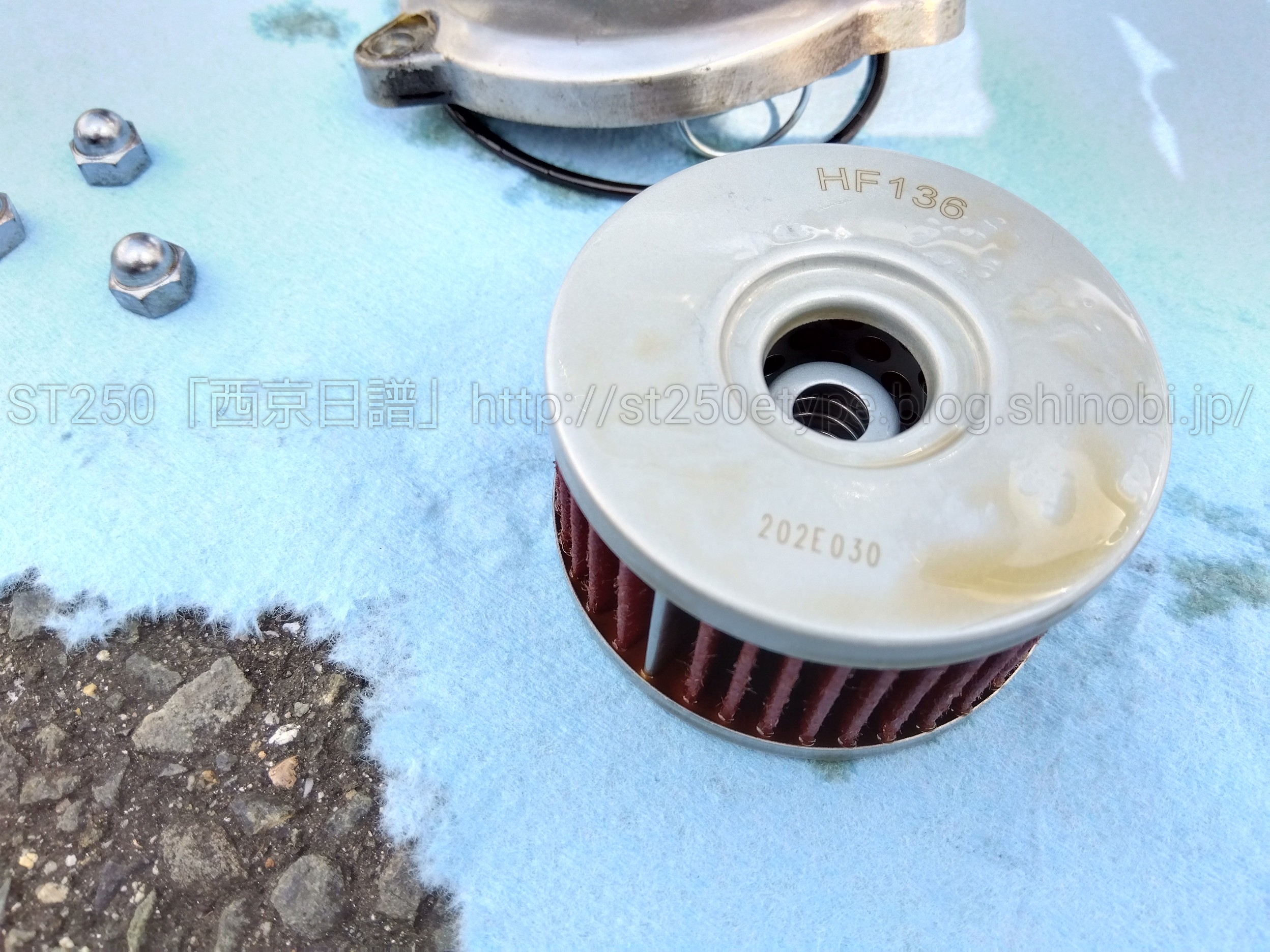 フィルターカバーを開けると、写真のようにオイルが垂れてきますが、廃油のオイルパンを下に置いておけば問題ありません。